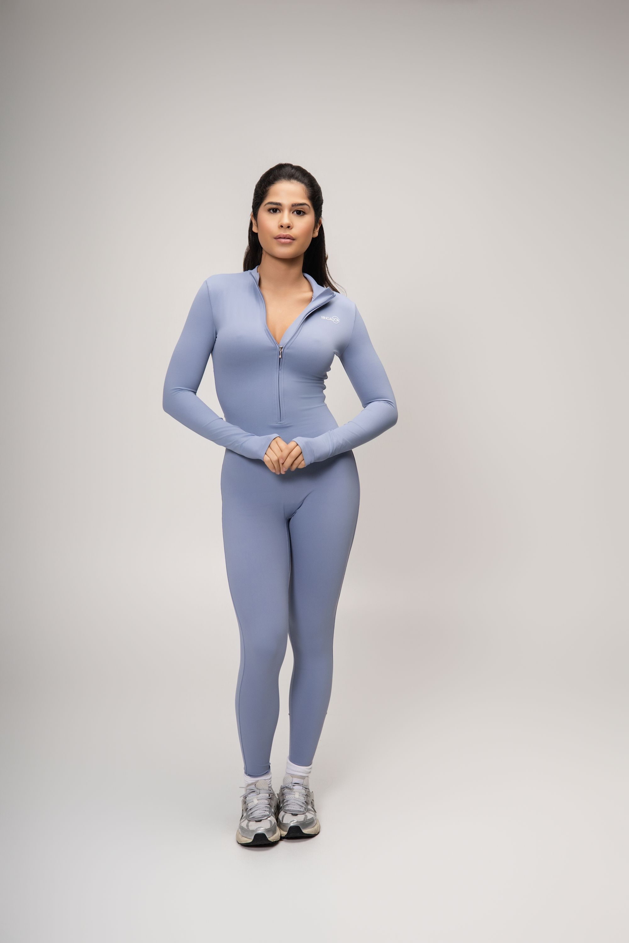 Cette combinaison de sport femme à manches longues offre une silhouette élégante et épurée, pensée pour allier performance, confort et style.